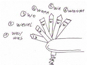 Also: Was/Wer+Wieviel+Wo+Wann=Wie!