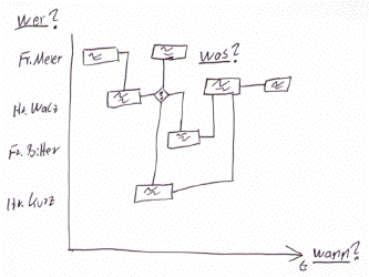 Dan Roam beschreibt in seinem genialen Buch: „The Back of the Napkin“ wie er herangeht um Probleme zu analysieren, zu verstehen, zu lösen und unterstützend visuell aufzubereiten.