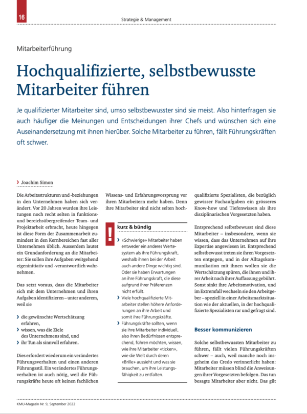 Print-Artikel zum Thema Führen von hoch qualifizierten Talenten