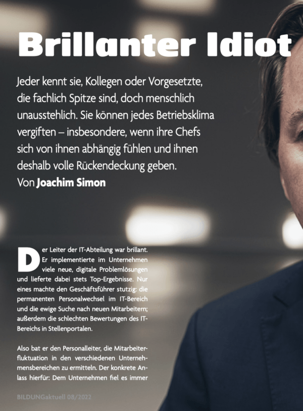 Print-Artikel zum Thema "Brilliant Jerks" – Brilliante Idioten