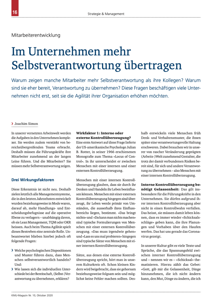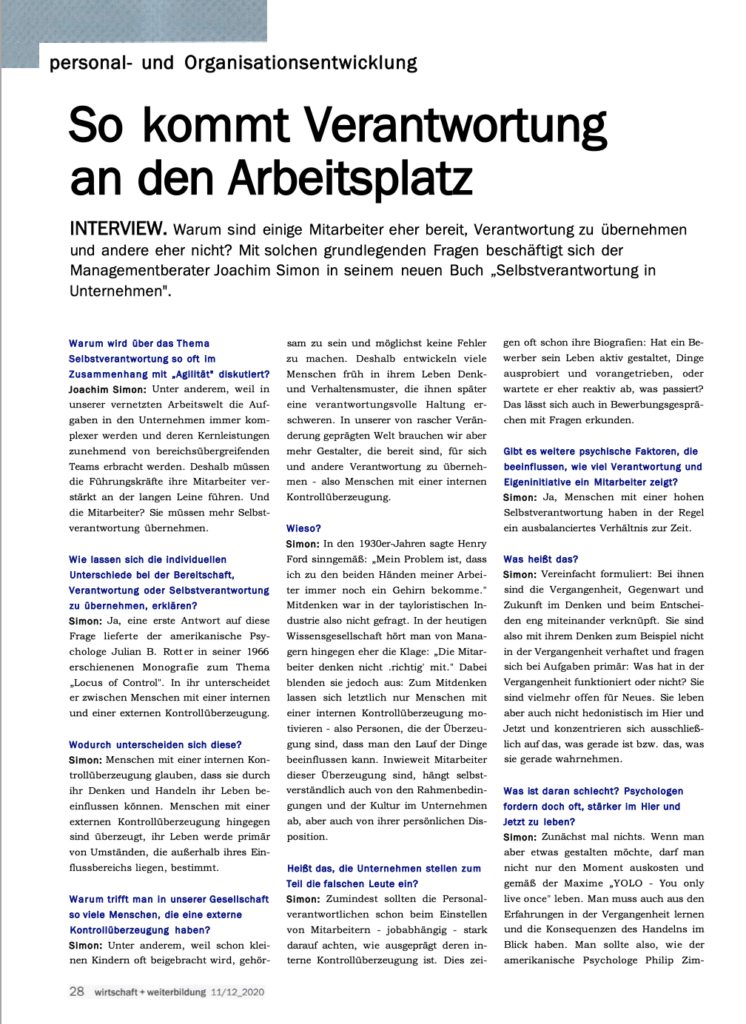 Print-Artikel zu meinem Buch Selbstverantwortung im Unternehmen