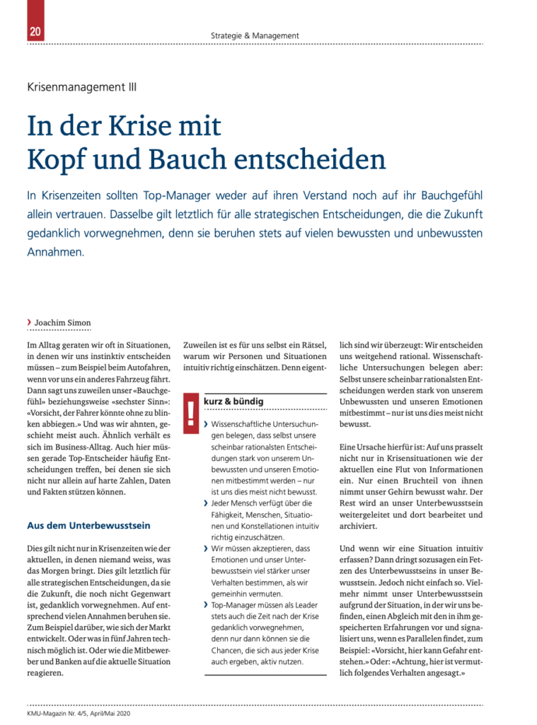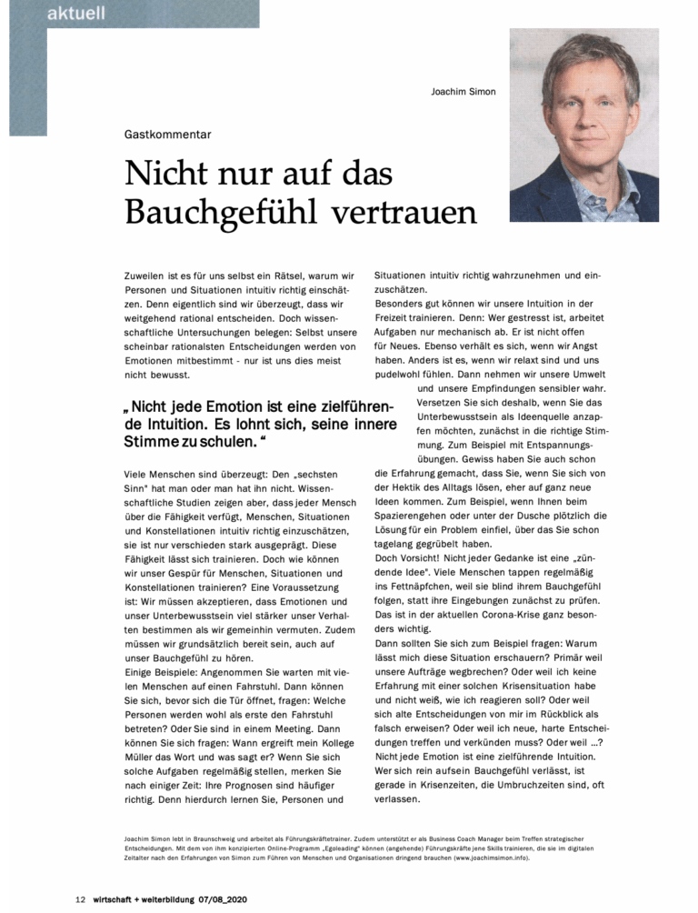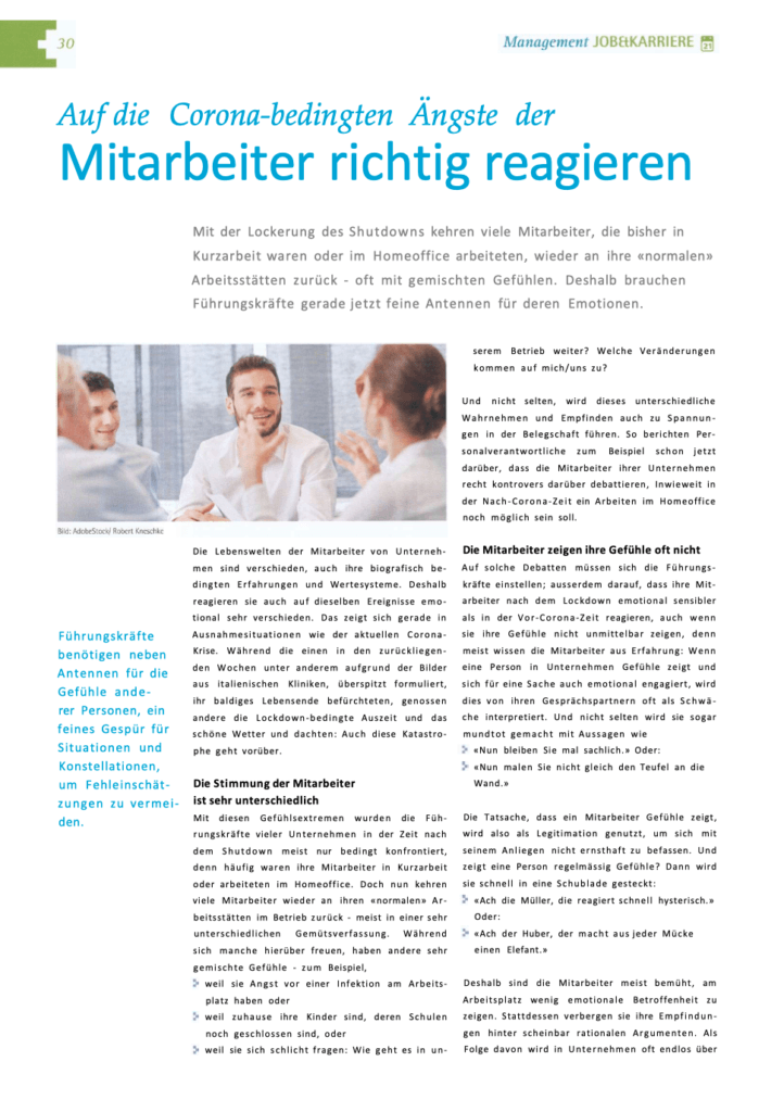 Print-Artikel zum Thema Führung und Emotion/Intuition
