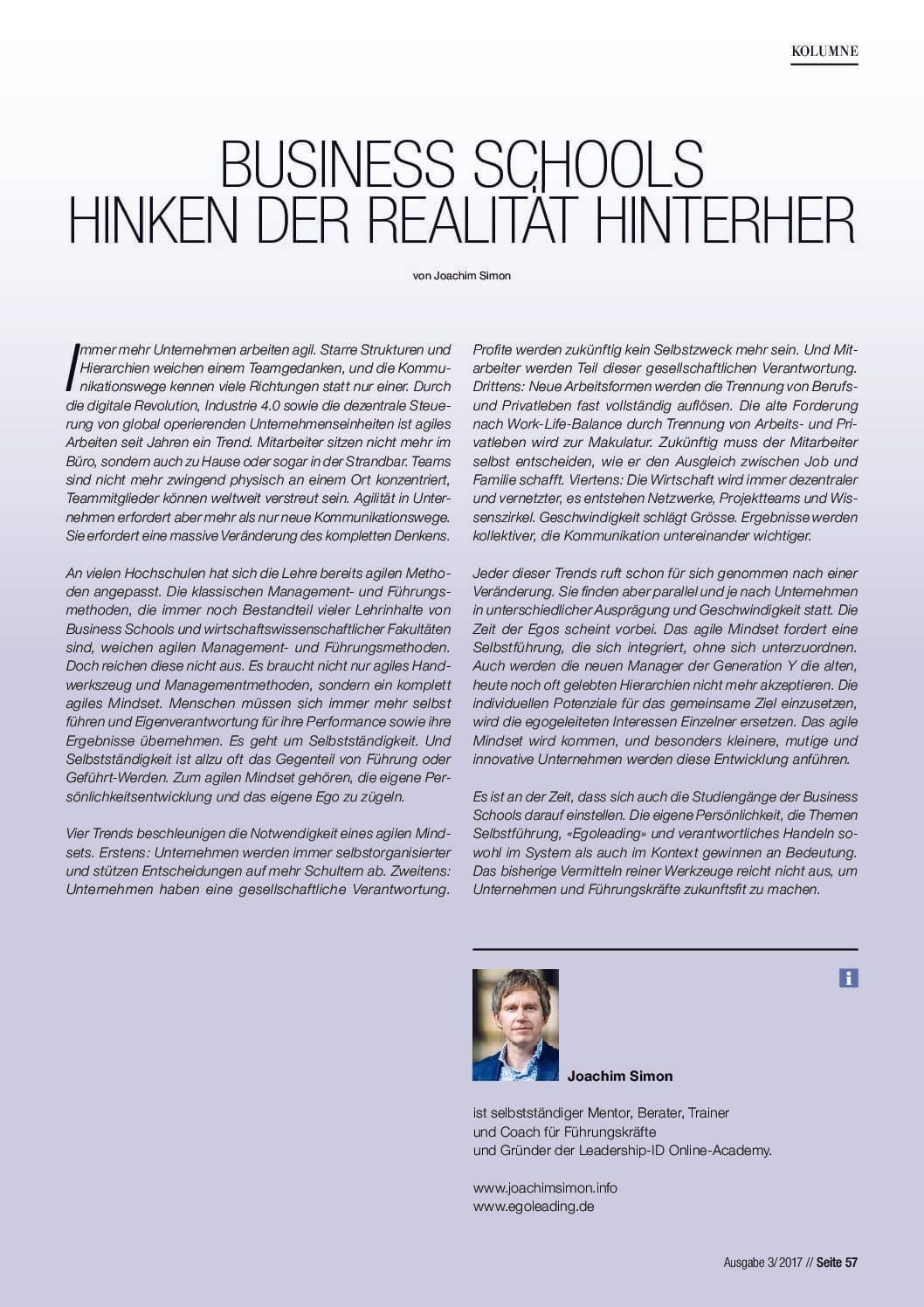 Print-Artikel zum Thema Selbstführung, Egoleading® und Super-Leadership
