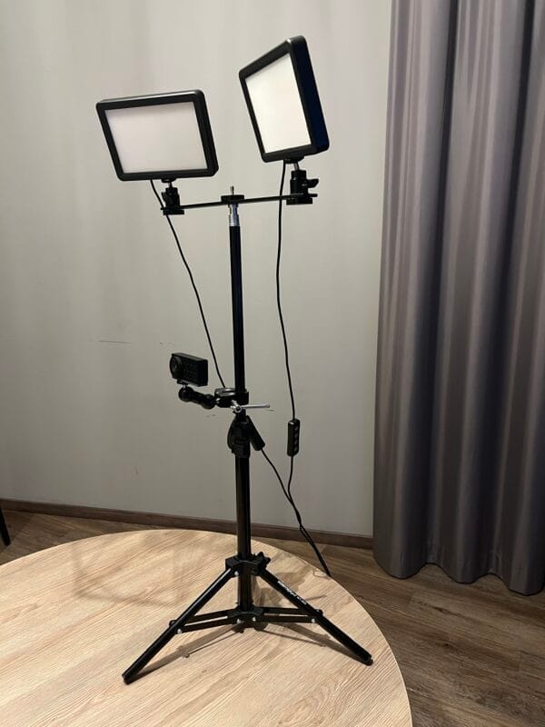 2x Rollei Lumis Keylight. Diese Lampen sind leicht, da sie keinen Akku haben und geben ein sehr gutes Licht. Du benötigst für die Stromversorgung noch dieses hochwertige USB-Netzteil
