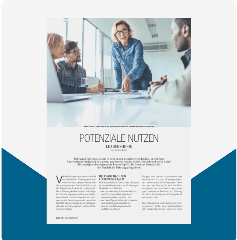 Ihr Wunsch nach Mitarbeitern die sagen: "Kein Problem Chef, das hatte ich auf dem Schirm und ist schon lange erledigt" ist keine naive Illusion. Auch Ihr Traum von einem Leben als Führungskraft, in dem Sie sich nicht gefühlt 24/7 für alles verantwortlich fühlen müssen und auch mal abschalten können – und dennoch die aktuelle Disruption meistern – ist ein realistisches Ergebnis Ihrer überzeugenden Leadership ID.