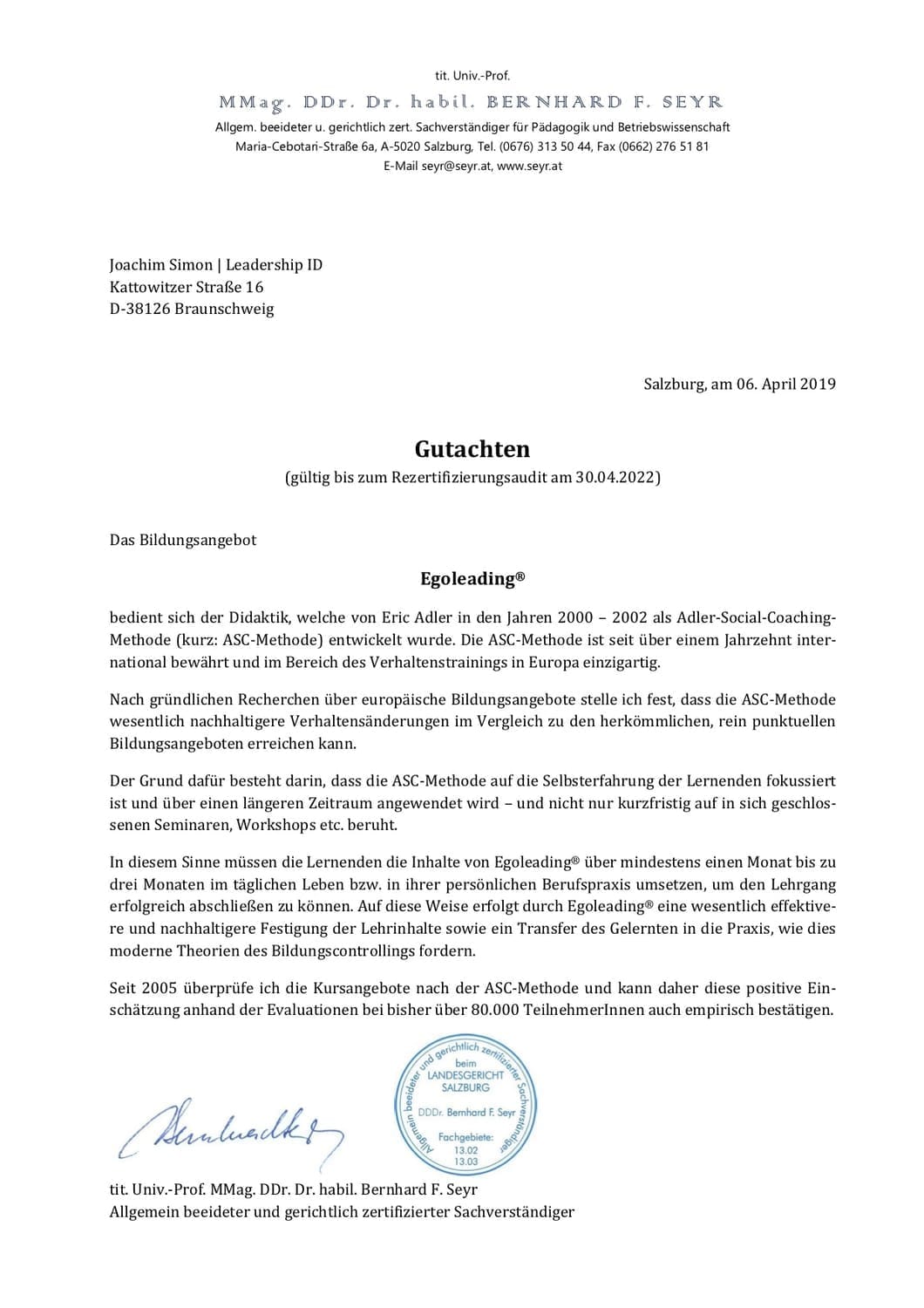 Zudem hat der Bildungswissenschaftler Prof. Dr. Seyr Egoleading eine überdurchschnittliche Nachhaltigkeit bescheinigt. Lesen Sie hier das Zertifikat.