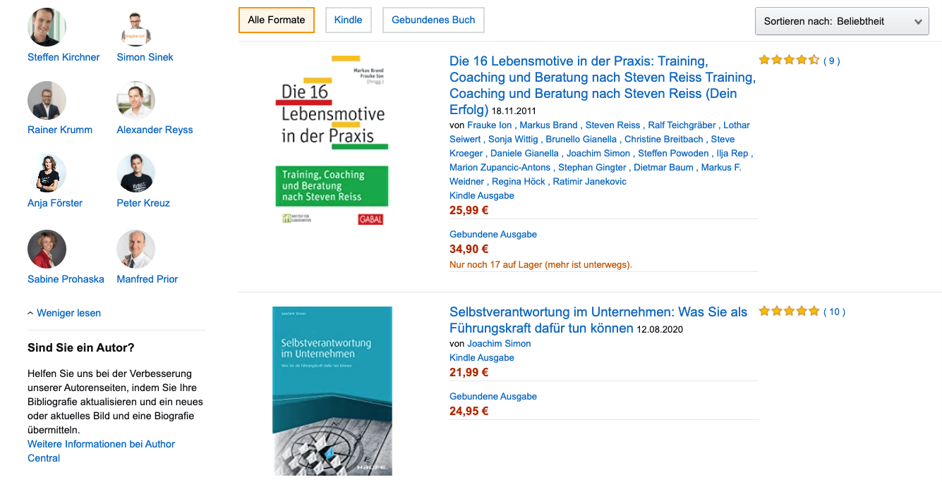 Als Autor habe ich natürlich auch eine Autorenseite bei Amazon: